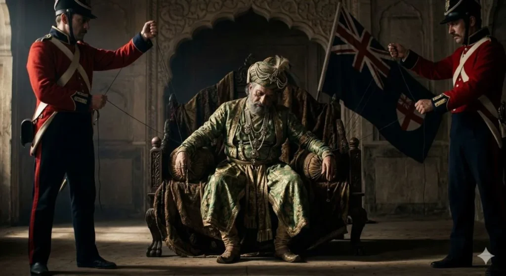 - ब्रिटिश “सहायक संधि” और आर्थिक नियंत्रण का उदाहरण