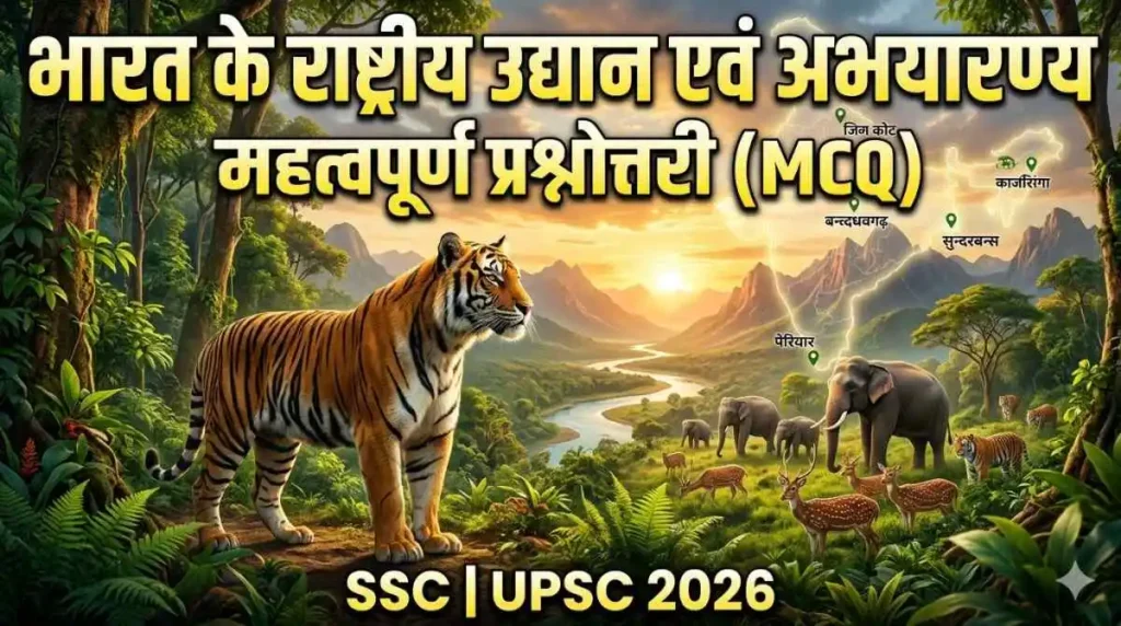 इस लेख में हम आपको National Park और अभयारण्य से जुड़े महत्वपूर्ण MCQs आसान भाषा में देंगे, जिससे आपकी तैयारी और भी मजबूत हो जाएगी।