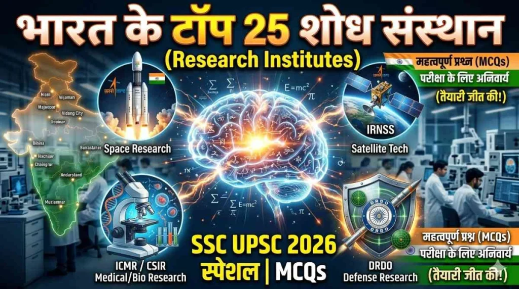 प्रतियोगी परीक्षाओं जैसे SSC, UPSC, Railway, Banking आदि में भारत के प्रमुख अनुसंधान संस्थानों से जुड़े प्रश्न अक्सर पूछे जाते हैं।