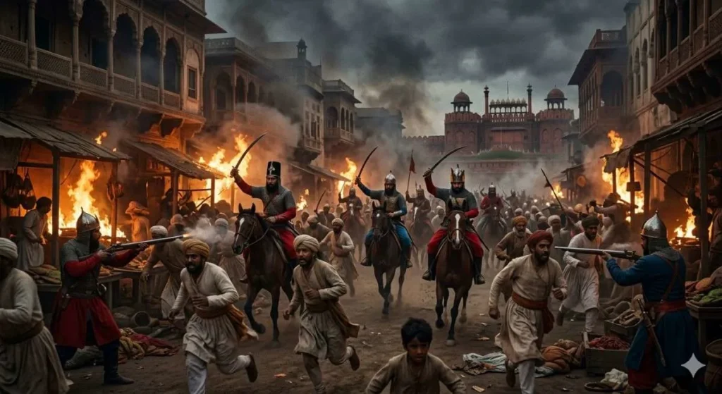 इसके बाद जो हुआ वह इतिहास के सबसे भयावह नरसंहारों में से एक था। नादिर के सैनिकों ने दिल्ली की गलियों में हजारों निर्दोष नागरिकों को मौत के घाट उतार दिया। इतिहासकारों के अनुसार इस नरसंहार में 20,000 से 30,000 लोग मारे गए। चाँदनी चौक, दरीबा कलाँ और आसपास के मुहल्लों में लाशें बिछ गईं।