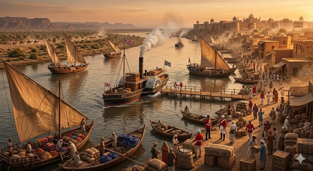 सिन्ध प्रदेश में कराची जैसे बंदरगाह भी थे जो समुद्री व्यापार के लिए महत्वपूर्ण थे। सिन्धु नदी और समुद्री मार्गों के संयोजन ने इस क्षेत्र को एक प्रमुख व्यापारिक केंद्र बना दिया था। ब्रिटिश कंपनी इन व्यापारिक संभावनाओं से अच्छी तरह परिचित थी और वे इस क्षेत्र में अपना व्यापारिक प्रभुत्व स्थापित करना चाहते थे।